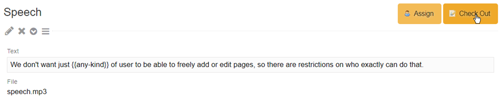 Firstly, there is a 'Check Out' button at the top of the record. This enables the currently logged-in user to check out the record. This also checks out any files associates with the record, and locks them from being edited.