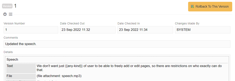 On each version there will be a “Rollback to This Version” button. Clicking this enables you to revert the version of a record to an earlier date.