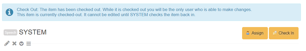 If the record is attempted to be edited while it is not checked out, an error will be displayed to the effect of: “This item is version controlled and cannot be edited without first being checked-out.”.