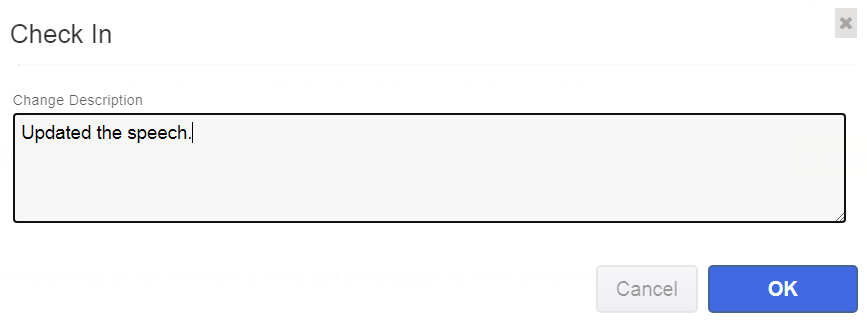 When the record is checked out, the button at the top of the screen will switch to 'Check In'. Clicking this will bring up a new form to fill in:
